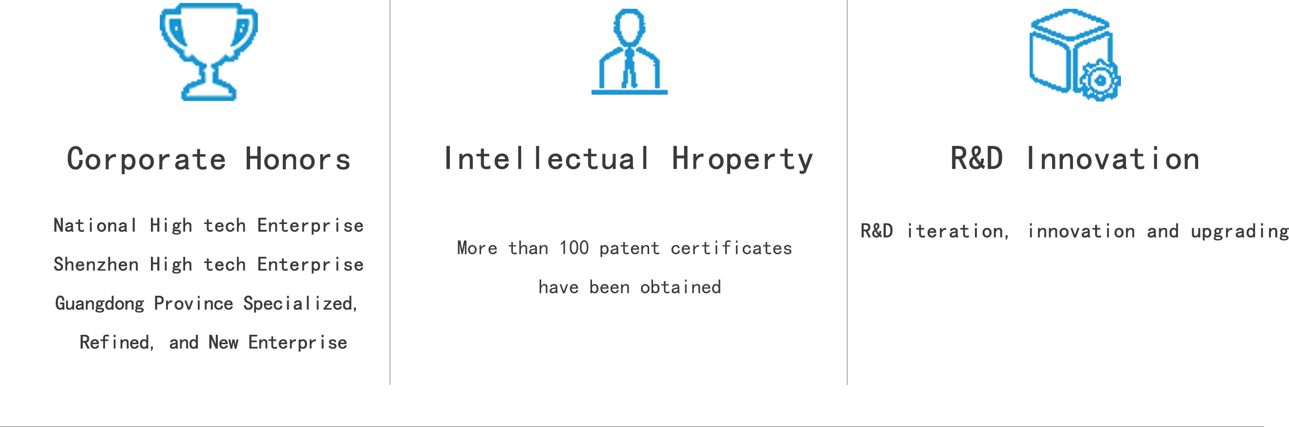 Since its establishment, the company has been awarded honors and qualifications such as the national level specialized, refined, and innovative "Little Giant", Guangdong Province's "specialized, refined, and innovative" enterprise, national high-tech enterprise, Shenzhen high-tech enterprise, software enterprise, and the most growing domestic brand in the field of CMCD motion control; We have over 100 intellectual property rights and software patents.