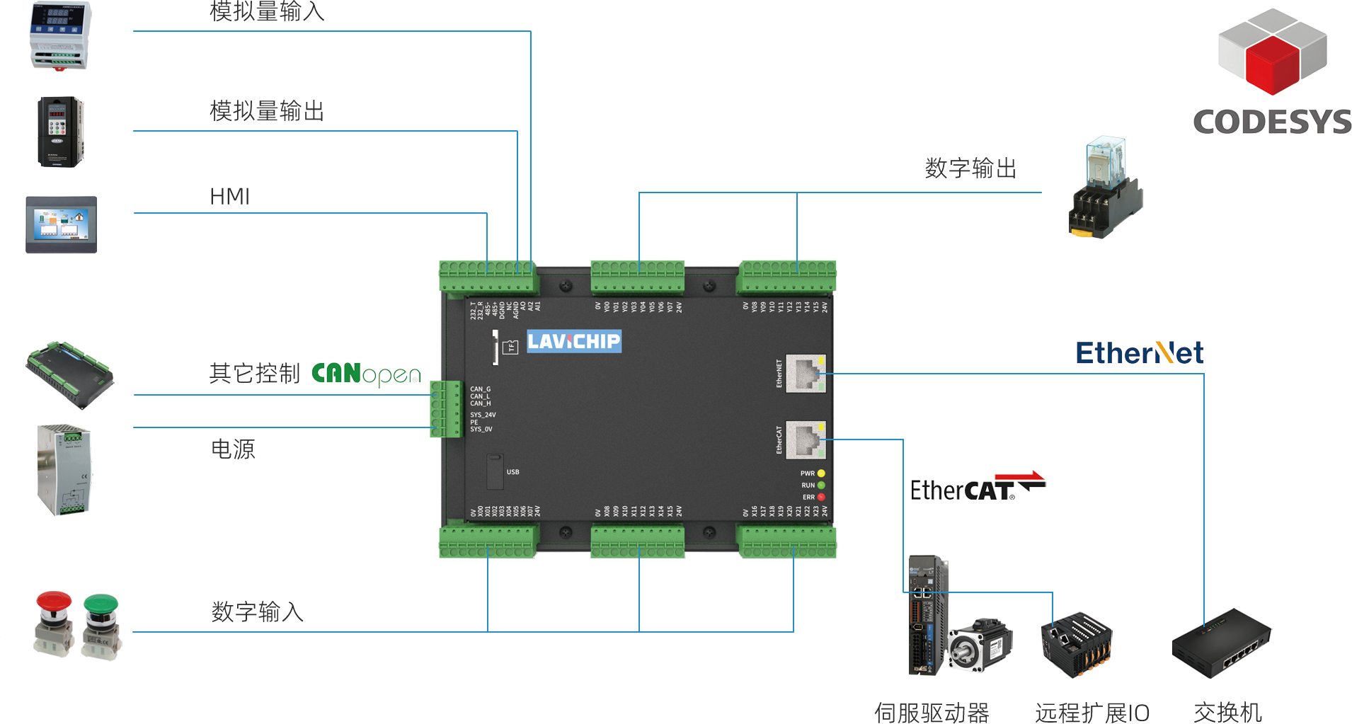 》支持第三方EtherCAT從站對接,配置靈活,適用於分布式和集中式控製場合;